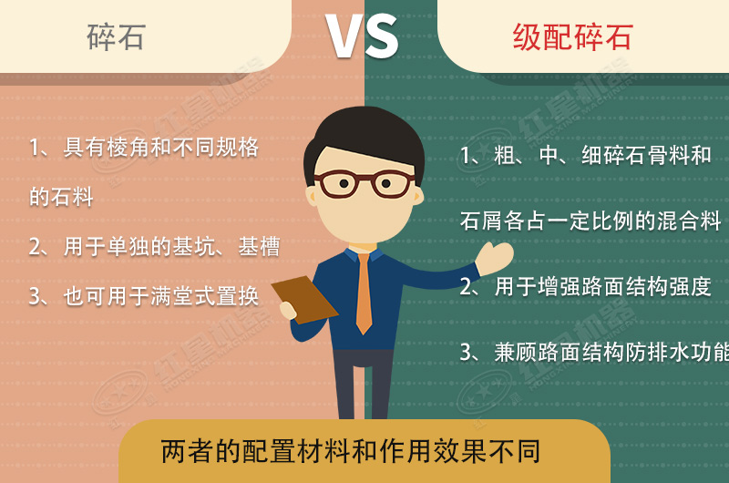 級配碎石和碎石有什么不同?礦山尾料生產(chǎn)級配碎石用什么破碎設備?